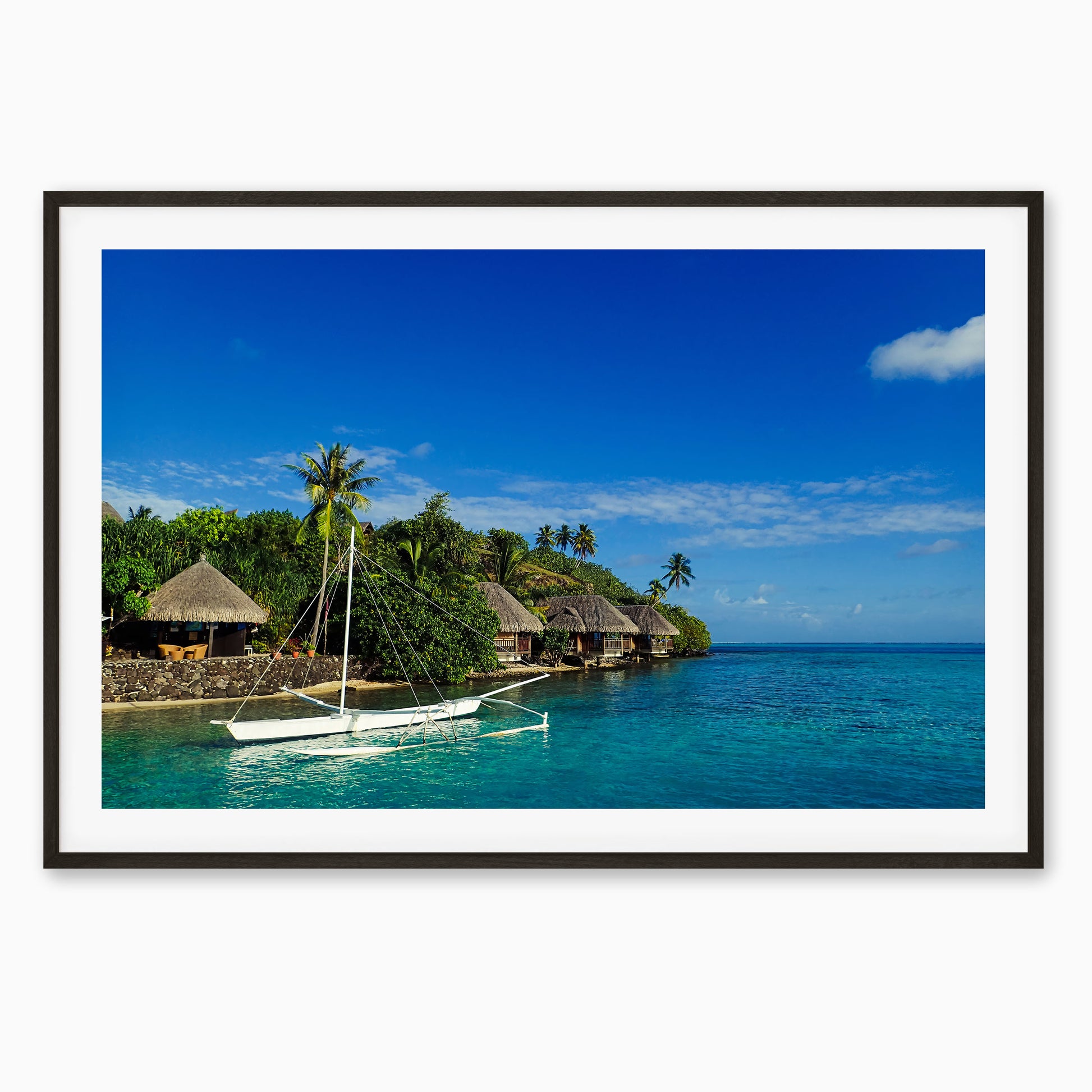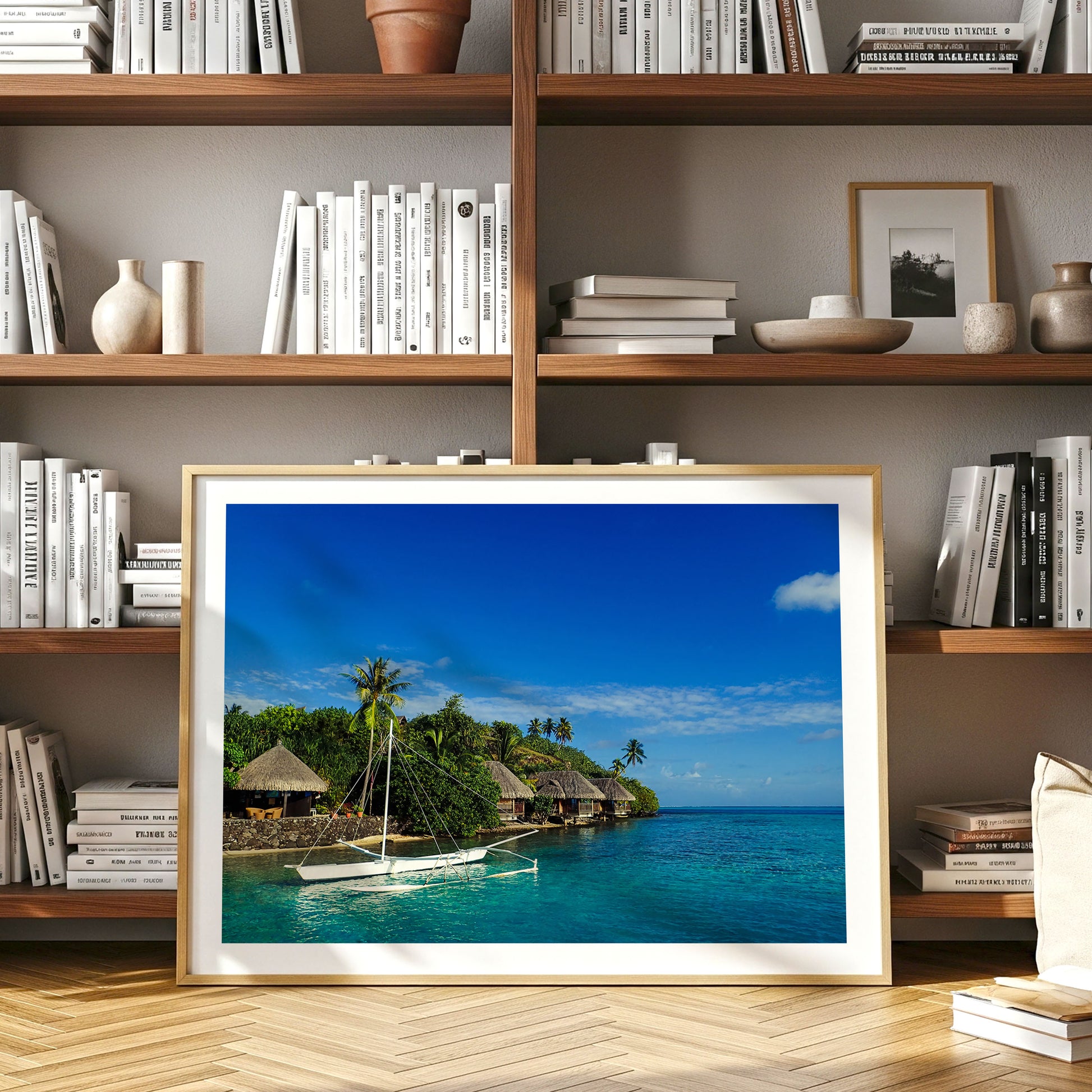 This print captures that dream escape we all crave—where time slows, the water sparkles, and your biggest decision is whether to nap in the shade or dip into the sea. The thatched bungalows, calm lagoon, and classic outrigger invite you to imagine yourself there, far from the noise, surrounded by peace. It’s not just a view—it’s a reminder of how good it feels to truly unwind.
