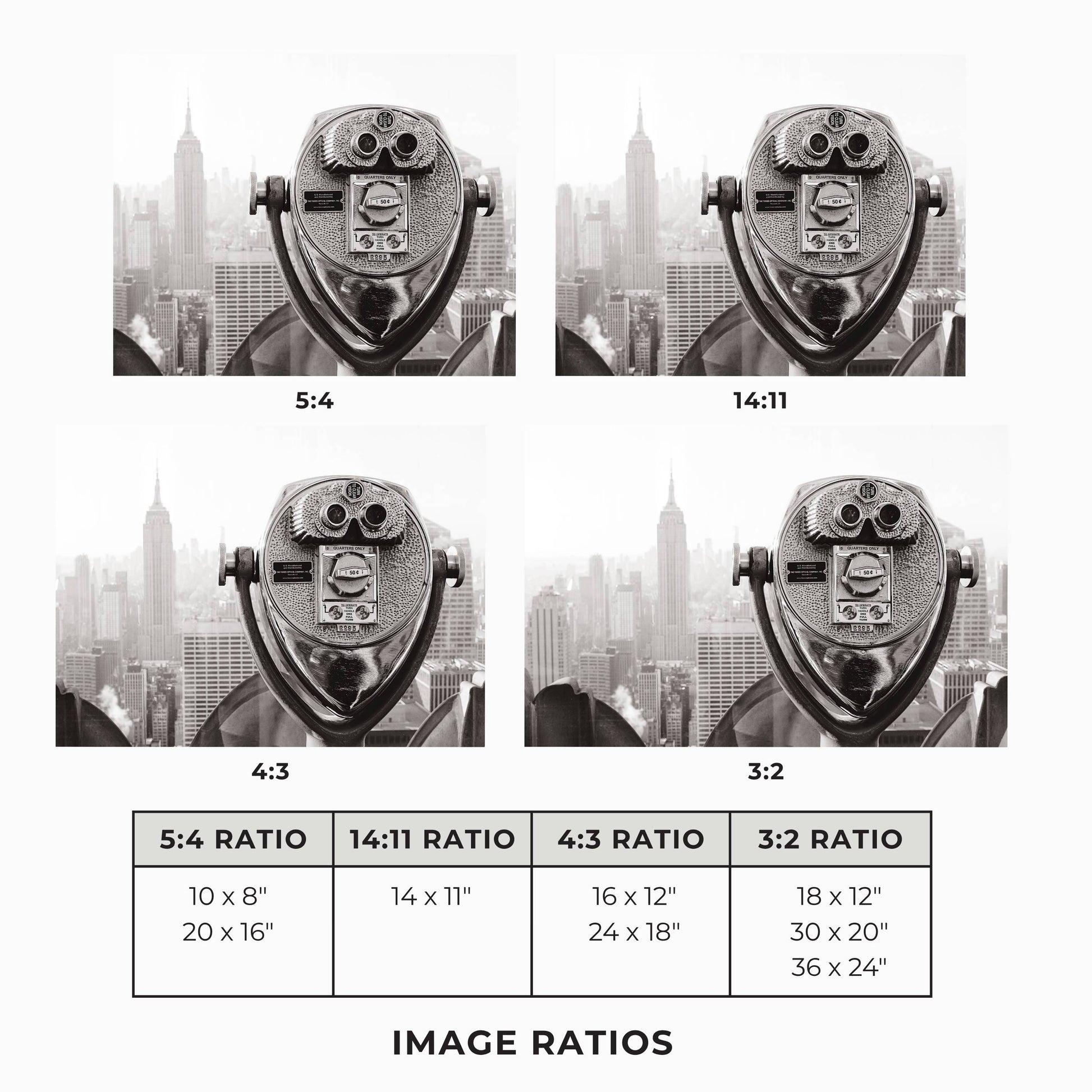 The print sizes available are designed to fit a variety of ready-made frame sizes that are available in stores. These different sizes will result in cropping of the original image. To ensure you're happy with the final look, please refer to the example image of how the artwork will appear in each size option.