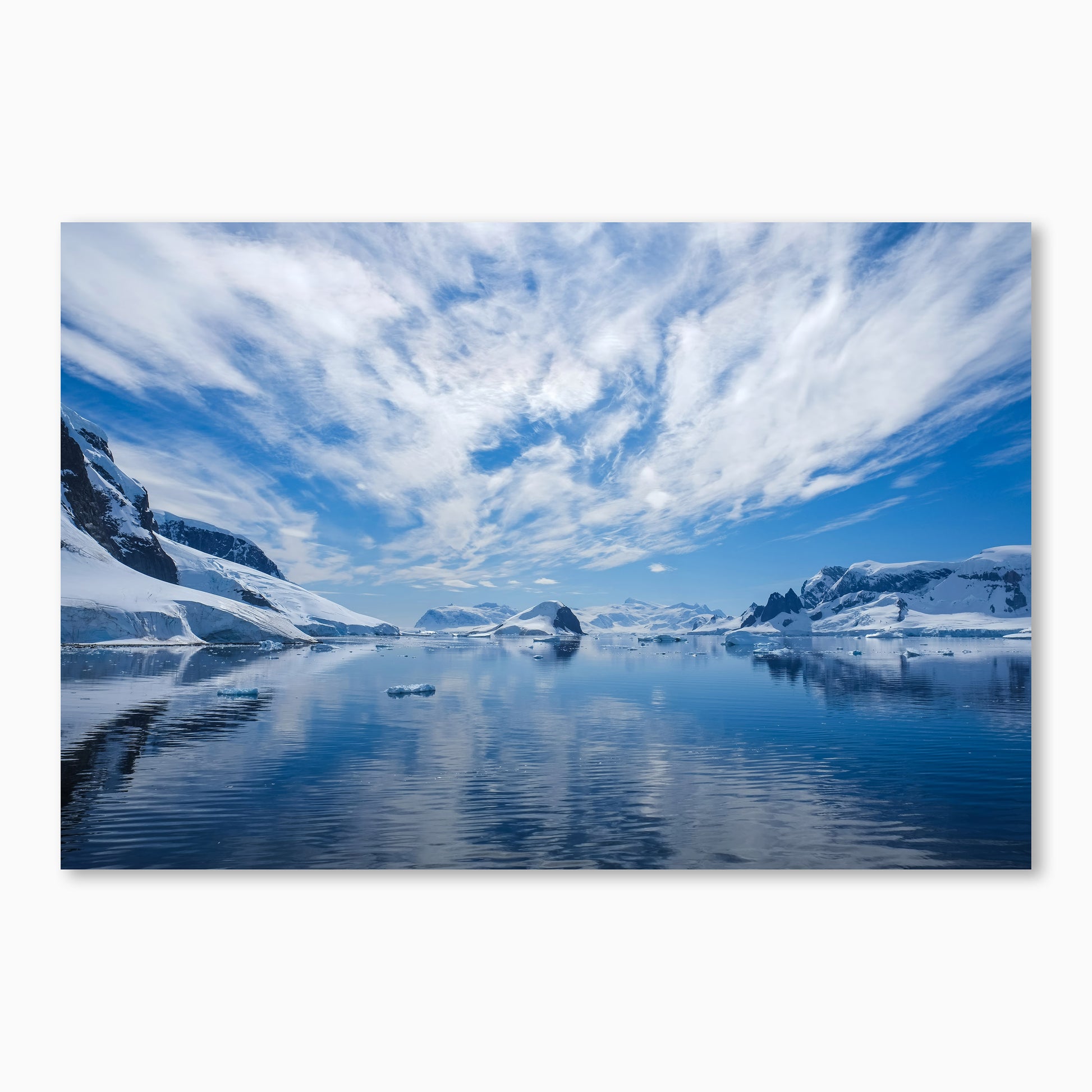 This image captures the surreal stillness of the Errera Channel on what was a rare blue-sky day on the icy continent. With sweeping clouds mirrored in calm, glacial waters, and mountains standing quiet and strong, it’s a moment of pure wonder in one of the most untouched places on Earth.
