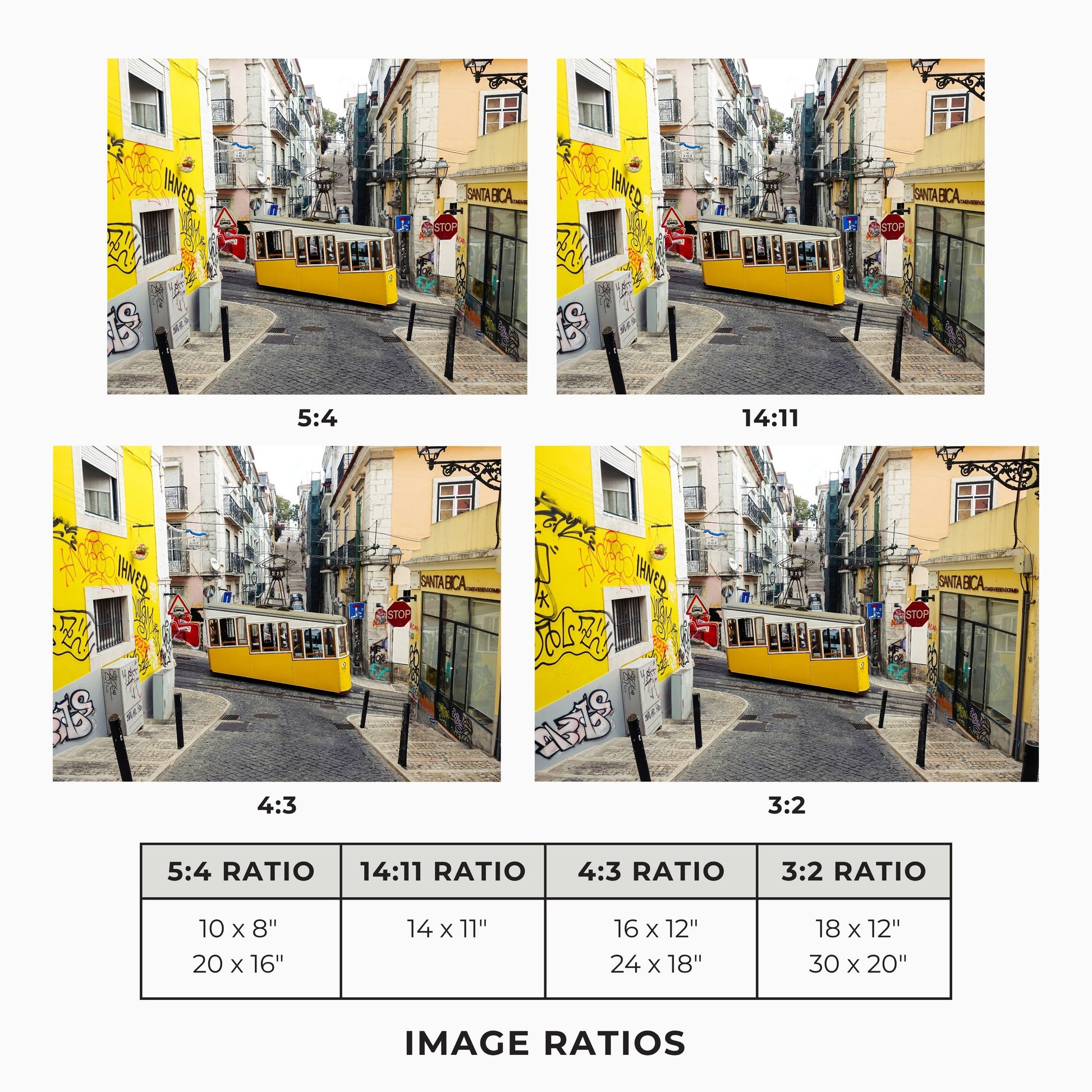 The print sizes available are designed to fit a variety of ready-made frame sizes that are available in stores. These different sizes will result in cropping of the original image. To ensure you're happy with the final look, please refer to the example image of how the artwork will appear in each size option.