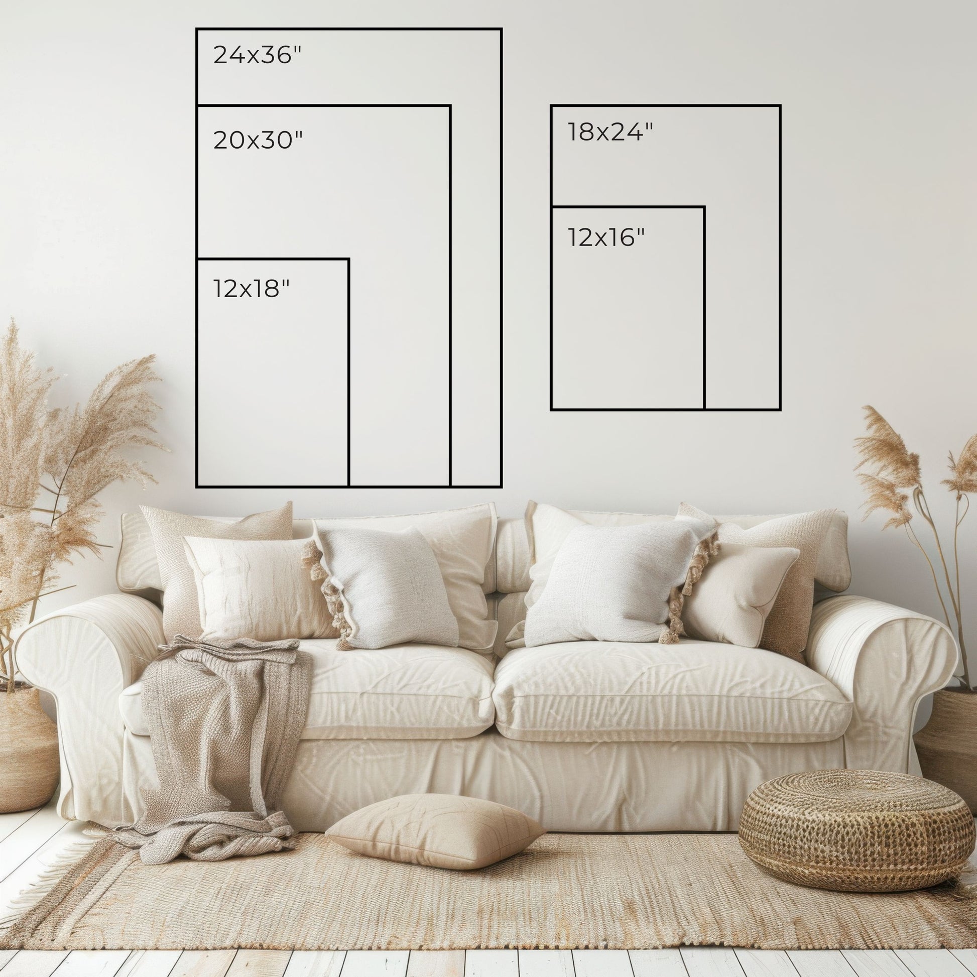 The print sizes available are designed to fit a variety of ready-made frame sizes that are available in stores. These different sizes will result in cropping of the original image. To ensure you're happy with the final look, please refer to the example image of how the artwork will appear in each size option.