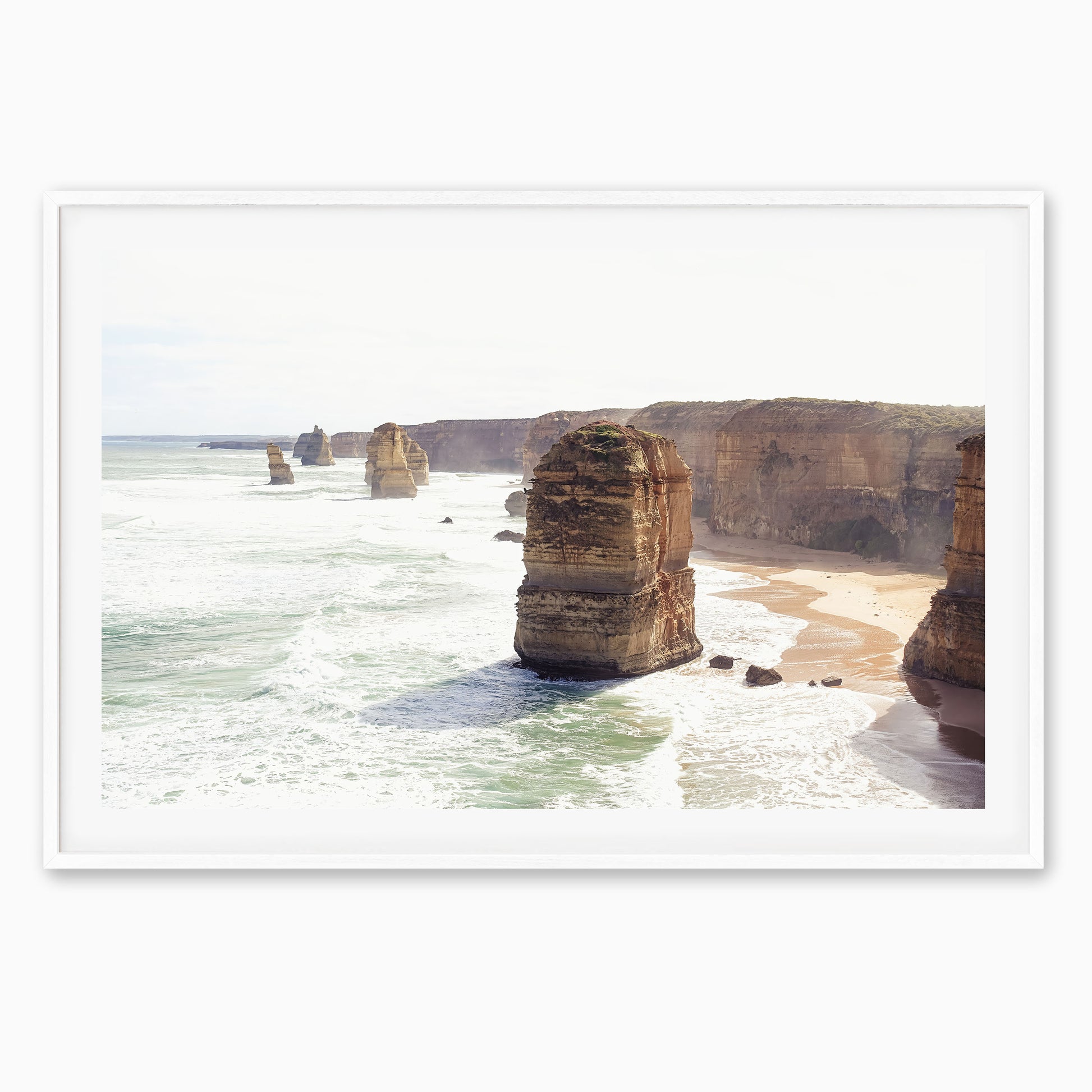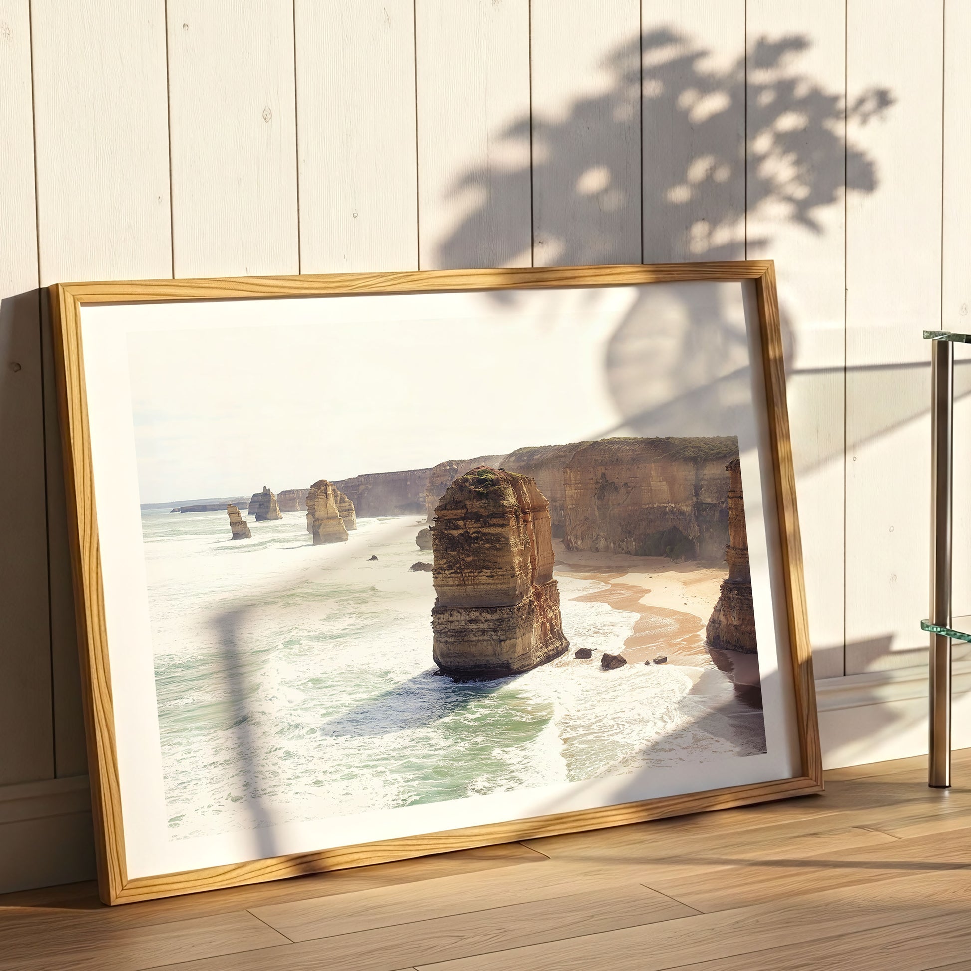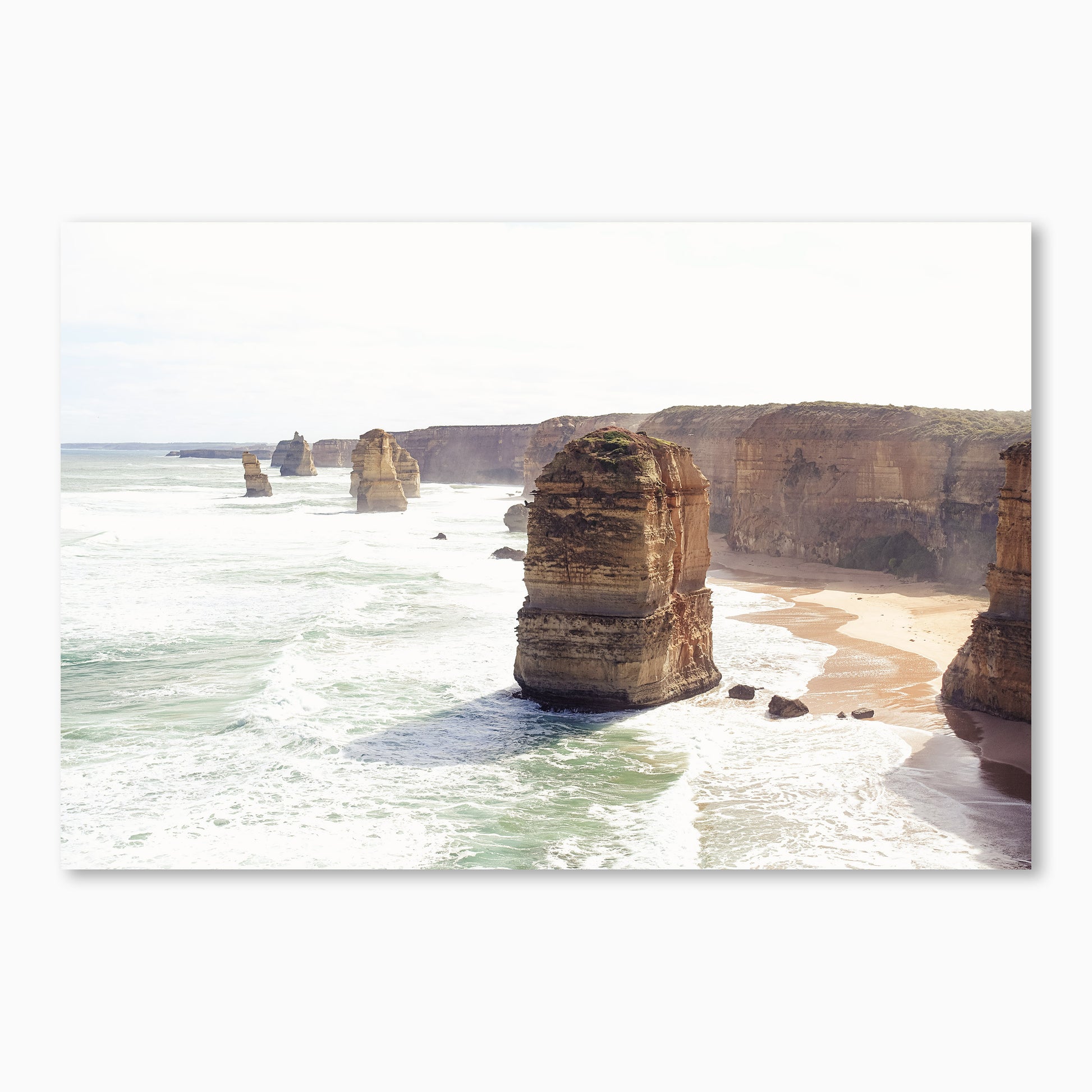 Along Victoria’s Great Ocean Road, these towering limestone stacks rise from the surf like ancient guardians of the coastline. This softer, sun-washed view of the Twelve Apostles captures the peaceful side of a place shaped by centuries of wind and waves. A reminder of nature’s quiet strength—and the kind of scene that stays with you long after the road trip ends.